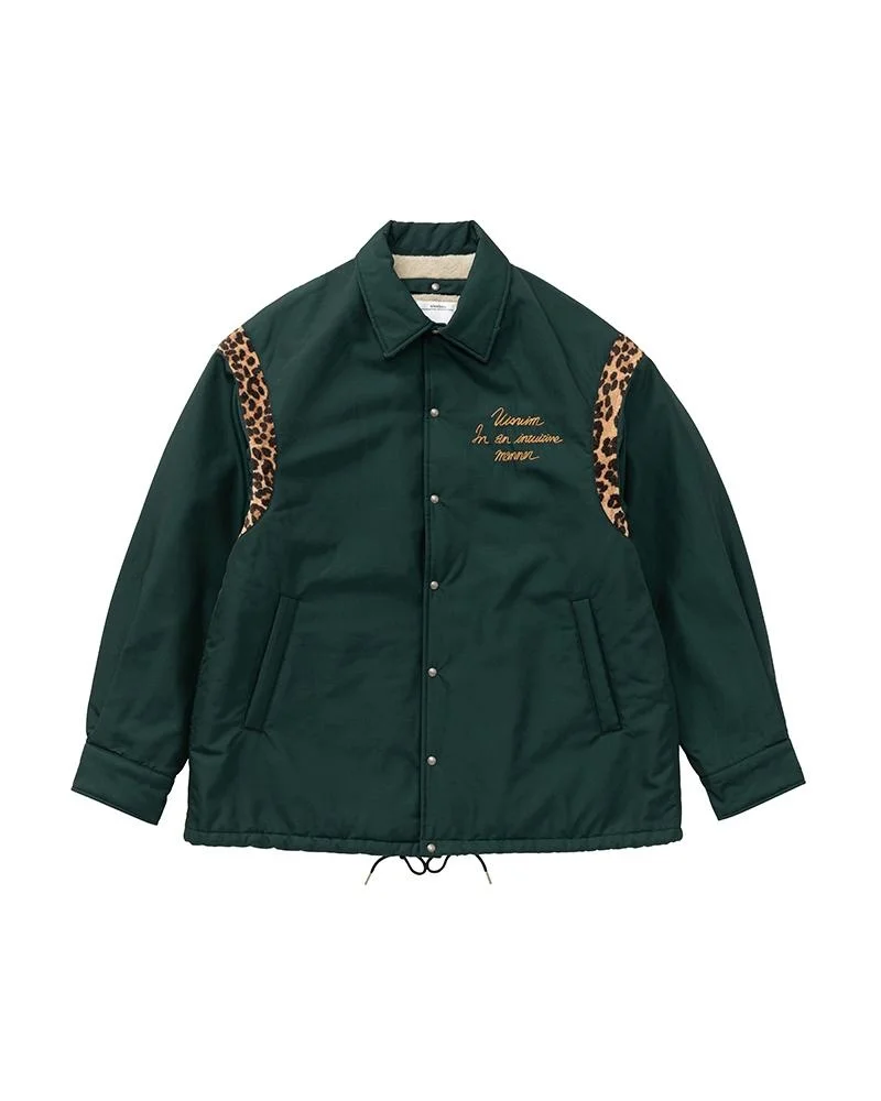 COACH JKT COLOR: BLACK, GREEN, MUSTARD SIZE: 1, 2, 3, 4, 5 A Down Jacket made from a densely woven Wool/Silk army twill fabric Custom printed silk mole fabric patch details Fine Wool Pile Lining Pressed Finish Custom Snap Buttons Front "Visvim In an intuitive manner" embroidery details 62% WOOL 38% SILK UNIT:cm Please be aware that there may be slight variations in the color of the fabric and pattern than shown in the images. There will be slight shrinkage when washing for the first time. SIZE LENGTH CHEST SHOULDER SLEEVE 1 72 120 56.7 57.7 2 74.5 124 58.2 59.2 3 77 128 59.7 60.7 4 79.5 133 61.7 62.2 5 82 138 63.7 63.7