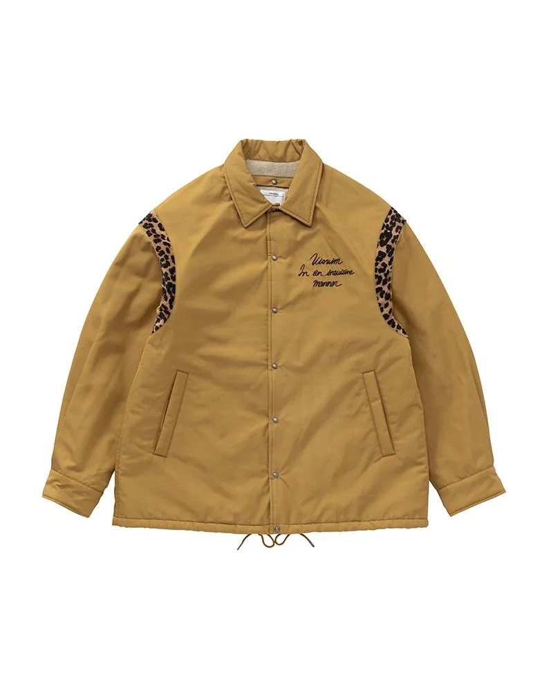 COACH JKT COLOR: BLACK, GREEN, MUSTARD SIZE: 1, 2, 3, 4, 5 A Down Jacket made from a densely woven Wool/Silk army twill fabric Custom printed silk mole fabric patch details Fine Wool Pile Lining Pressed Finish Custom Snap Buttons Front "Visvim In an intuitive manner" embroidery details 62% WOOL 38% SILK UNIT:cm Please be aware that there may be slight variations in the color of the fabric and pattern than shown in the images. There will be slight shrinkage when washing for the first time. SIZE LENGTH CHEST SHOULDER SLEEVE 1 72 120 56.7 57.7 2 74.5 124 58.2 59.2 3 77 128 59.7 60.7 4 79.5 133 61.7 62.2 5 82 138 63.7 63.7