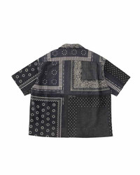 COPA SHIRT S/S COLOR: BLACK, NAVY SIZE: 1, 2, 3, 4, 5 Patchwork shirt made from original bandanas Natural dye finish Original bamboo buttons Please Note : 74% Wool , 26% Linen SIZE 1 : Length 65.5 , Shoulder 52.5 , Sleeve length 23.4 , Chest 126 (cm) SIZE 2 : Length 68 , Shoulder 54 , Sleeve length 24.1 , Chest 130.5 (cm) SIZE 3 : Length 70.5 , Shoulder 55.5 , Sleeve length 24.8 , Chest 134.5 (cm) SIZE 4 : Length 73 , Shoulder 57.5 , Sleeve length 25.5 , Chest 139.5 (cm) SIZE 5 : Length 75.5 , Shoulder 59.5 , Sleeve length 26.2 , Chest 144.5 (cm) Please be aware that the vintage fabric, bandanas, blanket, and african indigo fabric used may vary in color and pattern from item to item. With time, these fabrics may also become weaker and less tear-resistant. Also, due to the use of natural dyes, the outward appearance of items may vary slightly from one another. For certain items, mud may be applied for an added effect. Products may shrink slightly when washed.
