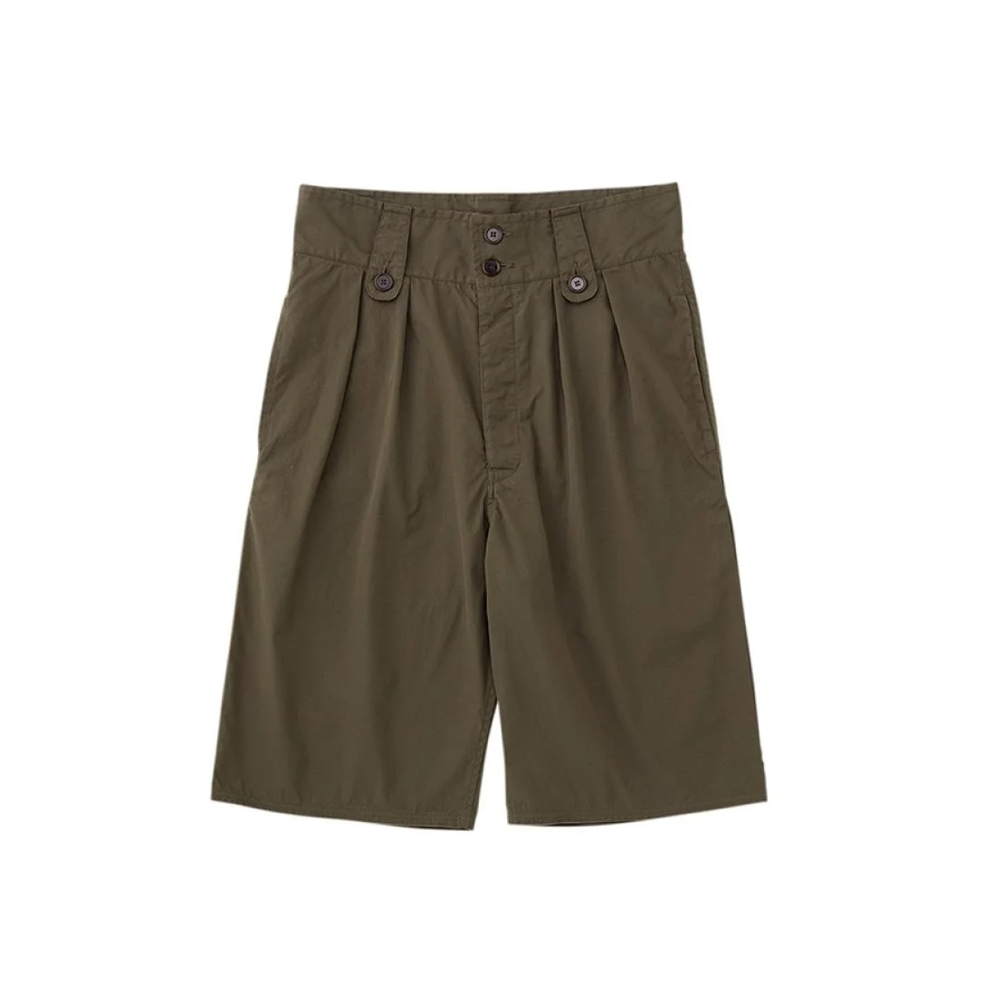 CORONEL SHORTS COLOR : BLACK , OLIVE , MUSTARD SIZE : 1 , 2 , 3 , 4 , 5 Military shorts made from specially processed cotton and nylon blend fabric One wash Original vegetable ivory buttons Please Note : 81% Cotton , 19% Nylon SIZE 1 : Waist 32.1 , Inseam 8.7 , Thigh width 13.8 , Hem width 10.8 (inch) SIZE 2 : Waist 34.1 , Inseam 9.3 , Thigh width 14.3 , Hem width 11.3 (inch) SIZE 3 : Waist 36 , Inseam 9.9 , Thigh width 14.8 , Hem width 11.8 (inch) SIZE 4 : Waist 38 , Inseam 10.5 , Thigh width 15.2 , Hem width 12.3 (inch) SIZE 4 : Waist 38 , Inseam 1 0. 5 , Thigh width 15.2 , Hem width 12.3 (inch) SIZE 5 : Waist 40 , Inseam 11.1 , Thigh width 15.7 , Hem width 12.8 (inch) SIZE 5 : Waist 4 0 , Inseam 11.1 , Thigh width 15.7 , Hem width 12.8 (inch) Please be aware that the fabric used may vary in color and pattern from item to item. Products may shrink slightly when washed.