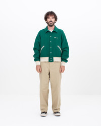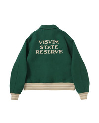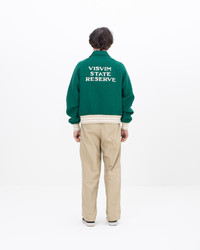 CRESTWOOD VARSITY JKT COLOR: NAVY, GREEN, BEIGE SIZE: 1, 2, 3, 4, 5 Custom Wool Linen Blend Double Cloth Jacket Pressed Finish Custom Ribbing and Snap Buttons "Visvim" (Front Left) and "VISVIM STATE RESERVE" (Back) Handle Embroidery Detail 62% Wool 38% Linen Made in Japan UNIT:cm : SIZE LENGTH CHEST SLEEVE 1 60.8 117 88 2 62.8 121 90.2 3 64.8 125 92.5 4 67.3 130 95 5 69.8 135 97.5