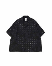 CROSBY SHIRT S/S (CHIRIMEN) COLOR: BLACK, NAVY, BROWN SIZE: 1, 2, 3, 4, 5 A Shirt made from a Silk Kimono fabric from the Tango region of Kyoto with a custom pattern print Pressed Finish Custom Water Buffalo Buttons 100% SILK UNIT:cm : Please be aware that there may be slight variations in the color of the fabric and pattern than shown in the images. There will be slight shrinkage when washing for the first time. SIZE LENGTH CHEST SHOULDER SLEEVE 1 65.3 126.7 52.2 23.4 2 67.8 130.7 53.7 24.1 3 70.3 134.7 55.2 24.8 4 72.8 139.7 57.2 25.5 5 75.3 144.7 59.2 26.2
