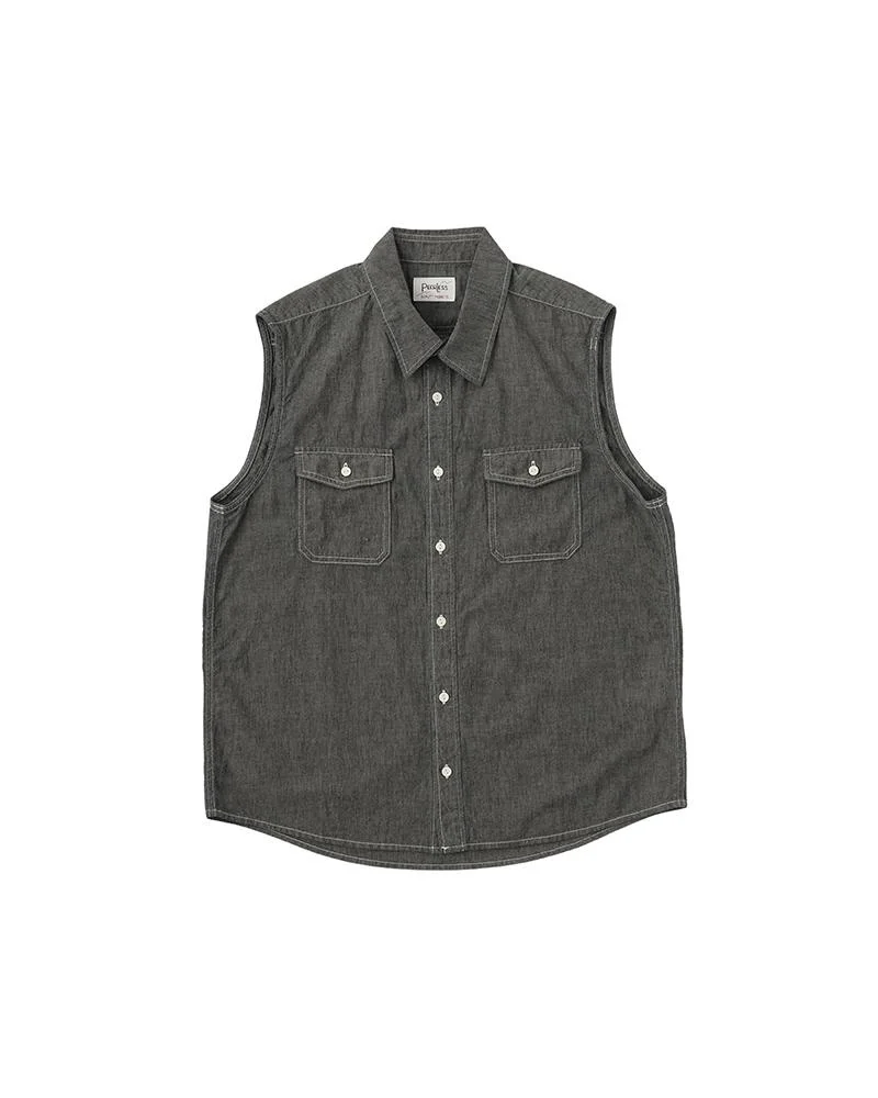 CUT OFF SHIRT CHAMBRAY COLOR: DK.INDIGO, INDIGO SIZE: 1, 2, 3, 4, 5 Chambray sleeveless shirt made from cotton-silk blend fabric Indigo skein dyeing Damage processed Original cow bone buttons Please Note : 92% Cotton 8% Silk SIZE 1 : Length 72 , Shoulder 44 , Chest 112 (cm) SIZE 2 : Length 74.5 , Shoulder 46 , Chest 117 (cm) SIZE 3 : Length 77 , Shoulder 48 , Chest 122 (cm) SIZE 4 : Length 79.5 , Shoulder 50 , Chest 127 (cm) SIZE 5 : Length 82 , Shoulder 52 , Chest 132 (cm) Please be aware that the vintage fabric, bandanas, blanket, and african indigo fabric used may vary in color and pattern from item to item. With time, these fabrics may also become weaker and less tear-resistant. Also, due to the use of natural dyes, the outward appearance of items may vary slightly from one another. For certain items, mud may be applied for an added effect. Products may shrink slightly when washed.
