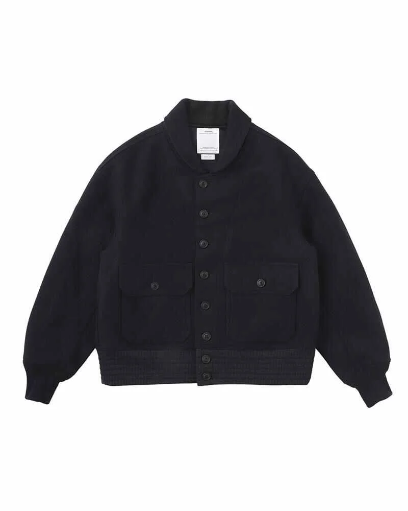DAYTON JKT COLOR: NAVY, OLIVE SIZE: 1, 2, 3, 4, 5 A Flight Jacket made from a heavily milled melton fabric achieved by repeated fulling Pressed Finish Custom Broad Stitch Ribs Custom Water Buffalo Buttons 62% WOOL 38% LINEN UNIT:cm : Please be aware that there may be slight variations in the color of the fabric and pattern than shown in the images. There will be slight shrinkage when washing for the first time. SIZE LENGTH CHEST SHOULDER SLEEVE 1 60.5 109 54 55.3 2 62 113 55.5 56.8 3 63.5 117 57 58.3 4 65.5 122 59 59.8 5 67.5 127 61 61.3
