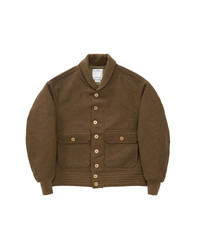 DAYTON JKT COLOR: NAVY, OLIVE, GREY SIZE: 1, 2, 3, 4, 5 A Jacket made from custom Wool/Linen double cloth fabric Pressed Finish Custom Broad Stitch Ribs Custom Water Buffalo Buttons 62% WOOL 38% LINEN UNIT:cm : Please be aware that there may be slight variations in the color of the fabric and pattern than shown in the images. There will be slight shrinkage when washing for the first time. SIZE LENGTH CHEST SHOULDER SLEEVE 1 60.5 109 54 55.3 2 62 113 55.5 56.8 3 63.5 117 57 58.3 4 65.5 122 59 59.8 5 67.5 127 61 61.3