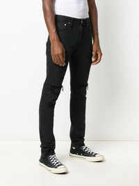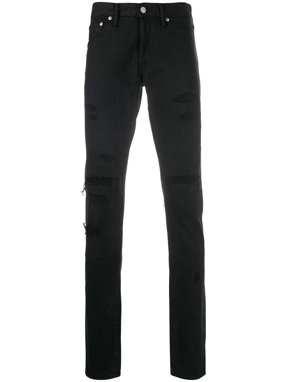 BLACK COTTON DISTRESSED SLIM-FIT JEANS FROM VISVIM FEATURING DISTRESSED FINISH, SLIM FIT, BUTTON FASTENING, BELT LOOPS AND CLASSIC FIVE POCKETS.