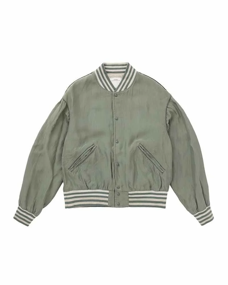 DOUGLAS JKT COLOR: BLACK, OLIVE, PL.GREEN, IVORY SIZE: 1, 2, 3, 4, 5 A rayon satin jacket made with a filament yarn. Damaged Finish Natural Dye Custom Snap Buttons 100% RAYON UNIT:cm Items that are finished with Natural Dye will experience different textural finishes where no two are alike. Also, there may be pieces that have mud left on the finished garment as a result of the treatment. Please be aware that there may also be slight variations in the color of the fabric and pattern than shown in the images. There will be slight shrinkage when washing for the first time. SIZE LENGTH CHEST SHOULDER SLEEVE 1 61 116 54 59.3 2 62.5 120 55.5 60.8 3 64 124 57 62.3 4 66 129 59 63.8 5 68 134 61 65.3
