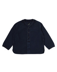 DUGOUT L/S COLOR: BLACK, INDIGO, OFF WHITE SIZE: 1, 2, 3, 4, 5 A Flanne Baseball Shirt made from a densely woven long staple cotton Garment Dyed Custom Water Buffalo Buttons 100% COTTON UNIT:cm Please be aware that the vintage fabric, bandanas, blanket, and african indigo fabric used may vary in color and pattern from item to item. With time, these fabrics may also become weaker and less tear-resistant. Also, due to the use of natural dyes, the outward appearance of items may vary slightly from one another. For certain items, mud may be applied for an added effect. Products may shrink slightly when washed. SIZE LENGTH CHEST SHOULDER SLEEVE 1 66 119 53.5 48.6 2 68 123 55 50.1 3 70 127 56.5 51.6 4 72 132 58.5 53.1 5 74 137 60.5 54.6