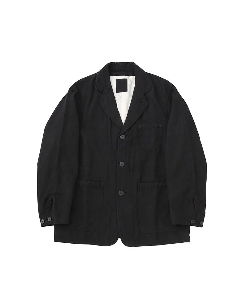 EUCLER CHORE JKT (W/L) COLOR: BLACK, NAVY, BEIGE SIZE: 1, 2, 3, 4, 5 A jacket made with a woven wool and linen gabardine material. Garment Dyed Custom Water Buffalo Buttons 80% WOOL 20% LINEN UNIT:cm : Items that are finished with Natural Dye will experience different textural finishes where no two are alike. Also, there may be pieces that have mud left on the finished garment as a result of the treatment. Please be aware that there may also be slight variations in the color of the fabric and pattern than shown in the images. There will be slight shrinkage when washing for the first time. SIZE LENGTH CHEST SHOULDER SLEEVE 1 75 112.8 52 58.7 2 77.5 116.8 53.5 60.2 3 80 120.8 55 61.7 4 82.5 125.8 57 63.2 5 85 130.8 59 64.7
