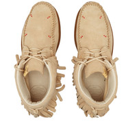Founded in 2000, Visvim has been influenced by global travel and Americana styles. Renowned for fusing traditional crafts methods with contemporary Visvim showcases that in the FBT Shaman folk shoe. The moccasin upper is hand sewn using vegetable-tanned suede and fringed around the collar, while underneath there’s a comfortable and lightweight Vibram® sole, too, for a more city-focused touch. - Suede Uppers - Leather Lining - EVA Midsole - Made in Japan