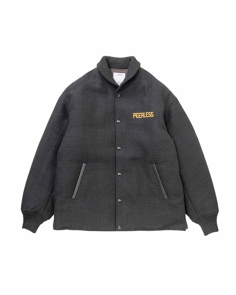 FERRAND DOWN JKT COLOR: BLACK, CHARCOAL, GREEN SIZE: 1, 2, 3, 4, 5 A Down Jacket made from a woven Wool / Linen twill fabric Pressed Finish White Goose Down Fill Custom "PEERLESS" engraved metal buttons "PEERLESS" embroidery detail "perfectly harmonized visvim" embroidery detail 56% WOOL 44% LINEN UNIT:cm : Please be aware that there may be slight variations in the color of the fabric and pattern than shown in the images. There will be slight shrinkage when washing for the first time. SIZE LENGTH CHEST SHOULDER SLEEVE 1 72 117.5 54.5 61.3 2 74.5 121.5 56 62.8 3 77 125.5 57.5 64.3 4 79.5 130.5 59.5 65.8 5 82 135.5 61.5 67.3
