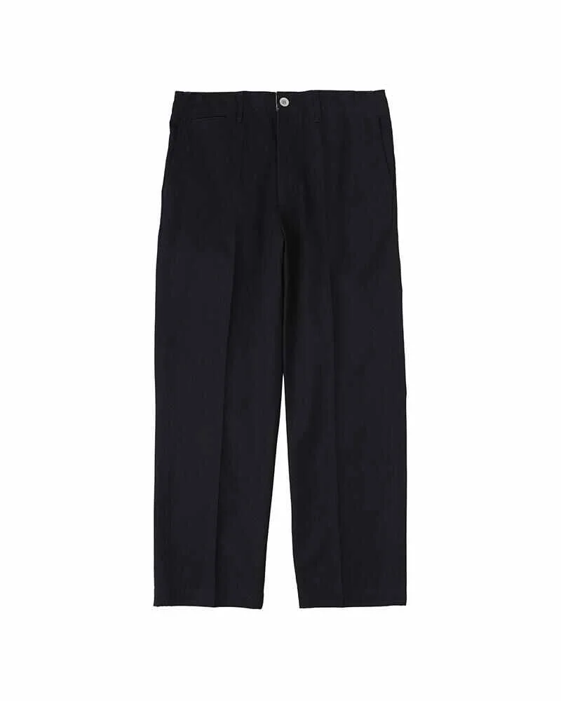 FIELD CHINO PANTS COLOR: BLACK, NAVY, BEIGE SIZE: 1, 2 , 3, 4, 5 Nairy weather chino pants made from super long staple cotton and densely woven Garment dyed Damaged finish Metal button 100% Cotton SIZE 1 : Waist 80 , Inseam 69.5 , Thigh width 32.1 , Hem width 20.8 (cm) SIZE 2 : Waist 85 , Inseam 71.5 , Thigh width 33.3 , Hem width 22 (cm) SIZE 3 : Waist 90 , Inseam 73.5 , Thigh width 34.5 , Hem width 23.2 (cm) SIZE 4 : Waist 95 , Inseam 75.5 , Thigh width 35.7 , Hem width 24.4 (cm) SIZE 5 : Waist 100 , Inseam 77.5 , Thigh width 36.9 , Hem width 25.6 (cm) Please be aware that the vintage fabric, bandanas, blanket, and african indigo fabric used may vary in color and pattern from item to item. With time, these fabrics may also become weaker and less tear-resistant. Also, due to the use of natural dyes, the outward appearance of items may vary slightly from one another. For certain items, mud may be applied for an added effect. Products may shrink slightly when washed.
