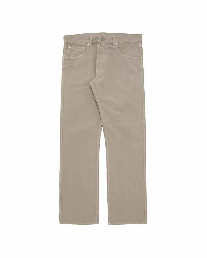 FLUXUS 01 SLIM COLOR: BLACK, NAVY, BEIGE SIZE: 1, 2, 3, 4, 5 Dry Pique fabric 5 Pocket Pants Garment Dyed Damaged Finish Regular Fit / Slightly Tapered Silhouette Medium-Rise Button Fly Custom Copper buttons and rivets Natural Dyed Buckskin patch 100% COTTON UNIT:cm Please be aware that there may be slight variations in the color of the fabric and pattern than shown in the images. There will be slight shrinkage when washing for the first time. SIZE LENGTH INSEAM WAIST THIGH WIDTH HEM 1 103.5 80 87 32.6 20.3 2 106 82 92 33.8 21.5 3 108.5 84 97 35 22.7 4 111 86 102 36.2 23.9 5 113.5 88 107 37.4 25.1