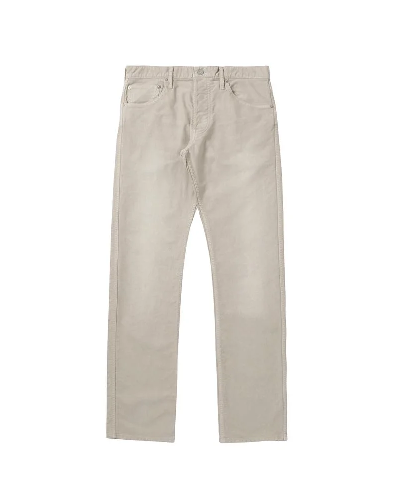 FLUXUS 01 SLIM G.CORDS COLOR: BLACK, NAVY, BEIGE SIZE: 1, 2, 3, 4, 5 Custom German Cord Cloth Five Pocket Pants Garment Dyed and Damaged Finish Regular Slim Fit, Tapered Silhouette, Medium-Rise, and Button Fly Custom Zip Fastener, Iron Buttons, and Rivets Natural Dyed Buckskin Patch 100% COTTON UNIT:cm : Please be aware that there is a possibility for slight variations in the color appearance and pattern on the fabric that is utilized for this product; each finished garment may be different from the displayed product image. There may also be some shrinkage following the first wash of this product. The Kofu, Bandana, Blanket, African Indigo textile and vintage fabrics used for the name tag and actual product itself vary in color and pattern where no two pieces are alike. Additionally, the degree of deterioration will vary with each fabric depending on its age and historical use so these products should be considered more fragile in comparison to our regularly manufactured products. SIZE LENGTH INSEAM WAIST THIGH WIDTH HEM 1 102.5 79.5 82 31.3 19 2 105 81.5 87 32.5 20.2 3 107.5 83.5 92 33.8 21.5 4 110 85.5 97 35 22.7 5 112.5 87.5 102 36.3 24