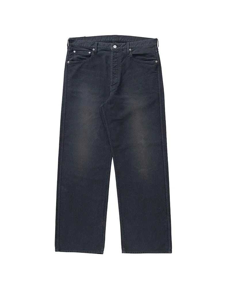 FLUXUS 01 WIDE G.CORDS COLOR: BLACK, NAVY, IVORY SIZE: 1, 2, 3, 4, 5 Custom German Cord Cloth Five Pocket Pants Garment Dyed and Damaged Finish Regular Fit, Straight Silhouette, High-Rise, and Button Fly Custom Iron Buttons and Rivets Natural Dyed Buckskin Patch 100% Cotton Made in Japan UNIT:cm : SIZE LENGTH INSEAM WAIST THIGH WIDTH HEM 1 102.5 73 83 33.6 22.7 2 105 75 88 34.8 23.9 3 107.5 77 93 36.1 25.2 4 110 79 98 37.3 26.4 5 112.5 81 103 38.6 27.7