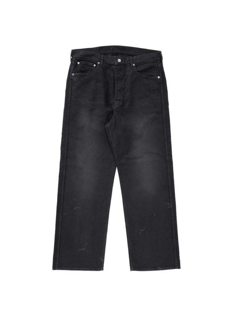 FLUXUS 01 WIDE G.CORDS COLOR: BLACK, BLUE, BEIGE SIZE: 1, 2, 3, 4, 5 Custom German Cord Cloth Five Pocket Pants Garment Dyed and Damaged Finish Regular Fit, Straight Silhouette, High-Rise, and Button Fly Custom PEERLESS Engraved Buttons and Rivets Natural Dyed Buckskin Patch 100% Cotton UNIT:cm : Please be aware that there may be slight variations in the color of the fabric and pattern than shown in the images. There will be slight shrinkage when washing for the first time. SIZE LENGTH INSEAM WAIST THIGH WIDTH HEM 1 102.5 73 83 33.4 22.7 2 105 75 88 34.6 23.9 3 107.5 77 93 35.9 25.2 4 110 79 98 37.1 26.4 5 112.5 81 103 38.4 27.7