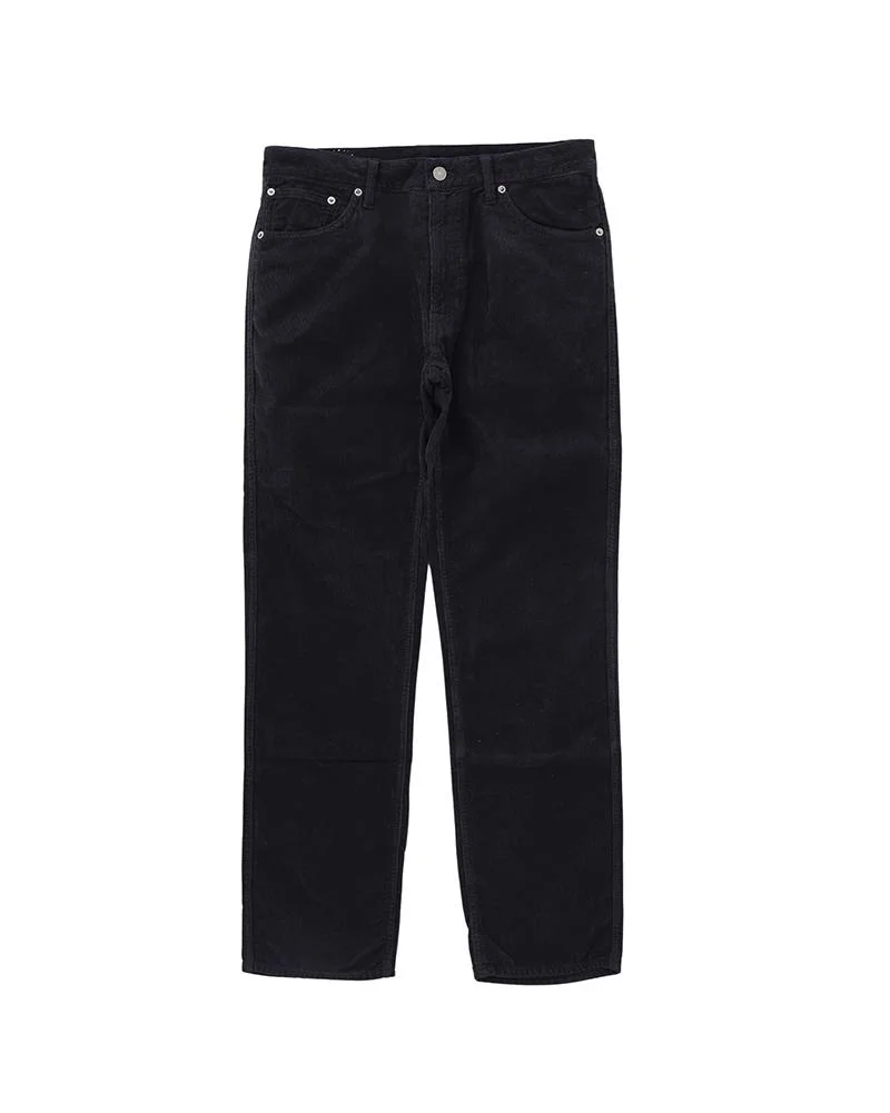 FLUXUS 03 CORDS COLOR: BLACK, NAVY SIZE: 1, 2, 3, 4, 5 Five pocket pants that are made with a woven corduroy material that utilizes an extra long staple cotton Garment Dyed Damaged Finish Regular Slim Fit, Tapered Leg Silhouette Medium-Rise Zipper Fly Original zipper slider, Iron donut button, Hand rivet Natural Dyed Buckskin patch 100% COTTON UNIT:cm Items that are finished with Natural Dye will experience different textural finishes where no two are alike. Also, there may be pieces that have mud left on the finished garment as a result of the treatment. Please be aware that there may also be slight variations in the color of the fabric and pattern than shown in the images. There will be slight shrinkage when washing for the first time. SIZE LENGTH INSEAM WAIST THIGH WIDTH HEM 1 103.7 79 84 31 18.7 2 106.2 81 89 32.2 19.9 3 108.7 83 94 33.5 21.2 4 111.2 85 99 34.7 22.4 5 113.7 87 104 36 23.7