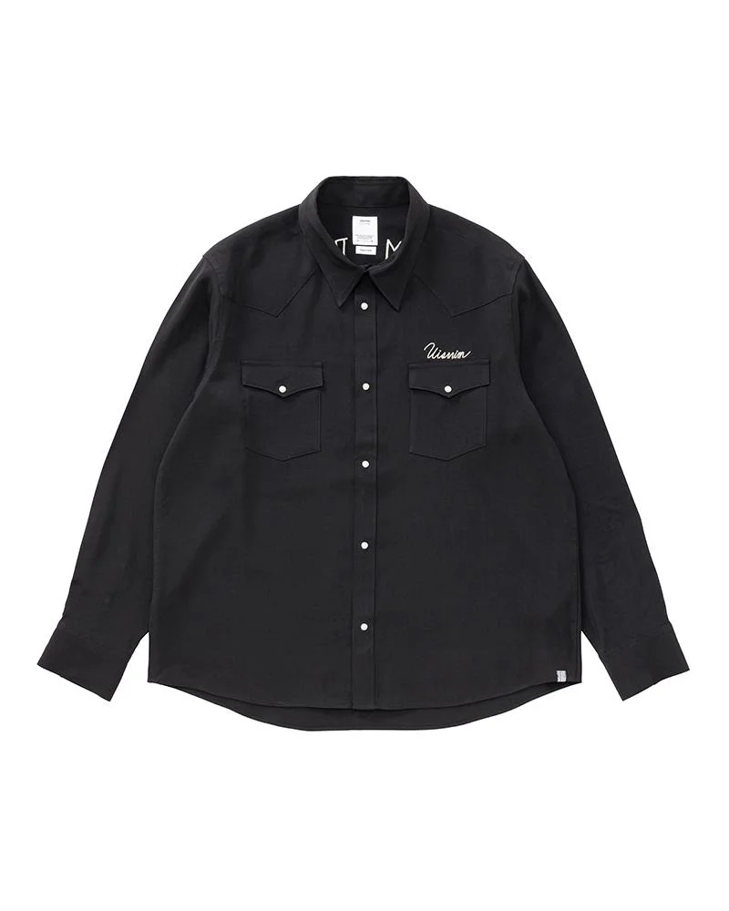 FOUR CORNERS L/S COLOR: BLACK, GREEN, BEIGE SIZE: 1, 2, 3, 4, 5 A Shirt made from a custom Rayon Canvas fabric that has undergone a special treatment Pressed Finish American Snap Buttons Front "Visvim" embroidery details Back "VISVIM DISTRICT TEAM TOKYO JAPAN" embroidery details 100% RAYON UNIT:cm Please be aware that there may be slight variations in the color of the fabric and pattern than shown in the images. There will be slight shrinkage when washing for the first time. SIZE LENGTH CHEST SHOULDER SLEEVE 1 73.5 117 46 62.3 2 76 122 48 63.8 3 78.5 127 50 65.3 4 81 132 52 66.8 5 83.5 137 54 68.3