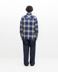FOUR CORNERS CHECK L/S COLOR: BLUE, RED SIZE: 1, 2, 3, 4, 5 Custom Check Wool Linen Blend Long Sleeve Shirt One Wash American Snap Buttons 86% Wool 14% Linen (BLUE) | 68% Wool 32% Linen (RED) UNIT:cm : Please be aware that there may be slight variations in the color of the fabric and pattern than shown in the images. There will be slight shrinkage when washing for the first time. SIZE LENGTH CHEST SHOULDER SLEEVE 1 72.5 117 46 62.5 2 75 122 48 64 3 77.5 127 50 65.5 4 80 132 52 67 5 82.5 137 54 68.5