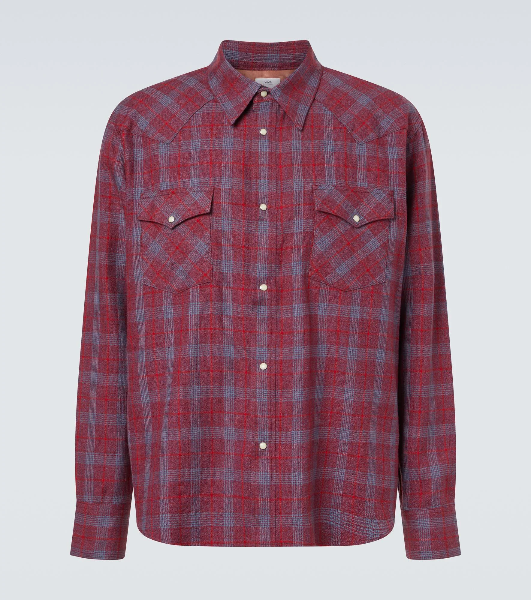 Based in Tokyo, Visvim masterfully combines traditional Japanese craft techniques with vintage-inspired apparel. This Four Corners shirt is crafted from a blend of wool and linen, decorated with a checked pattern throughout. Product Details - Material: 68% wool, 32% linen - Care instructions: dry clean - Made in Japan - Designer color name: Red - Item color: red, blue - Details: 100% rayon - Closure: snap-buttoned front - Pockets: snap-buttoned pockets - Item number: P01127578 Size & Fit - True to size - Without pleats in the back - Designed for a loose fit - Non-stretchy fabric - Falls below the hip - Height of model is 189cm-74.5" and wears a size 4