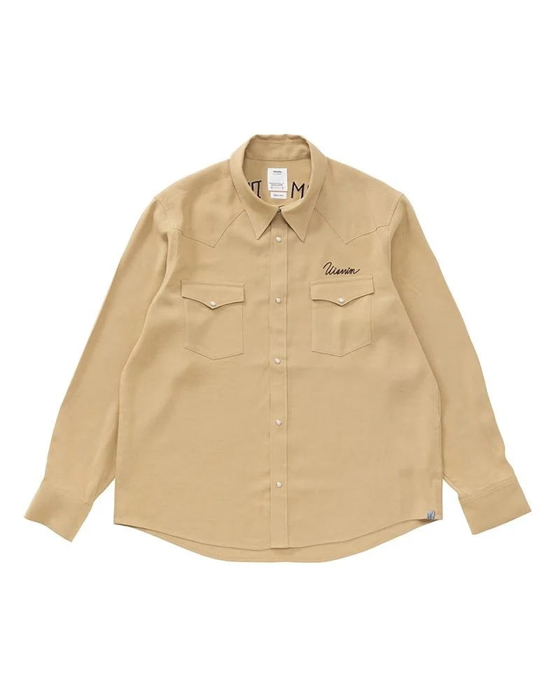 FOUR CORNERS L/S COLOR: BLACK, GREEN, BEIGE SIZE: 1, 2, 3, 4, 5 A Shirt made from a custom Rayon Canvas fabric that has undergone a special treatment Pressed Finish American Snap Buttons Front "Visvim" embroidery details Back "VISVIM DISTRICT TEAM TOKYO JAPAN" embroidery details 100% RAYON UNIT:cm Please be aware that there may be slight variations in the color of the fabric and pattern than shown in the images. There will be slight shrinkage when washing for the first time. SIZE LENGTH CHEST SHOULDER SLEEVE 1 73.5 117 46 62.3 2 76 122 48 63.8 3 78.5 127 50 65.3 4 81 132 52 66.8 5 83.5 137 54 68.3