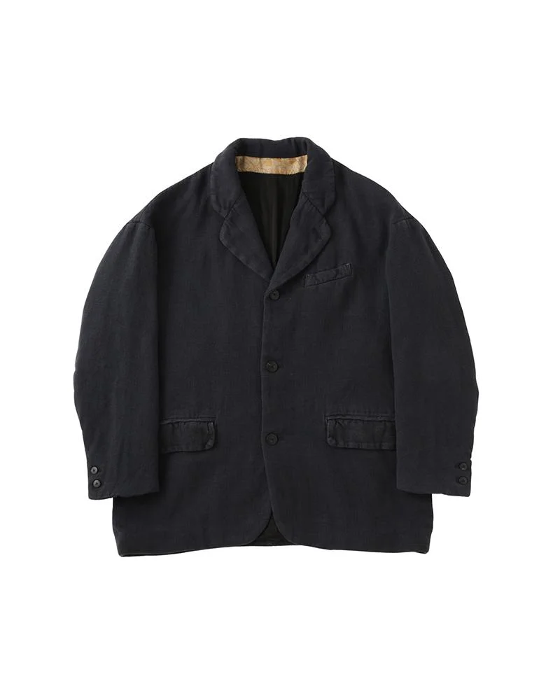 GALEN WOOL JKT DMGD COLOR: BLACK, NAVY, BLUE SIZE: 1, 2, 3, 4, 5 A Jacket made from a Custom Wool/Linen Twill Fabric Garment Dyed and Damaged Finish Custom Water Buffalo Buttons 62% WOOL 38% LINEN Please be aware that there is a possibility for slight variations in the color appearance and pattern on the fabric that is utilized for this product; each finished garment may be different from the displayed product image. There may also be some shrinkage following the first wash of this product. The Kofu, Bandana, Blanket, African Indigo textile and vintage fabrics used for the name tag and actual product itself vary in color and pattern where no two pieces are alike. Additionally, the degree of deterioration will vary with each fabric depending on its age and historical use so these products should be considered more fragile in comparison to our regularly manufactured products. SIZE LENGTH CHEST SHOULDER SLEEVE 1 79 113.5 62.4 53.2 2 81.5 117.5 63.9 54.7 3 84 121.5 65.4 56.2 4 86.5 126.5 67.4 57.7 5 89 131.5 69.4 59.2