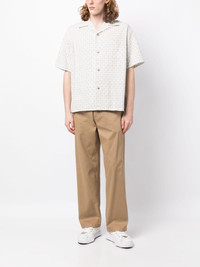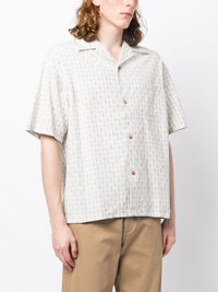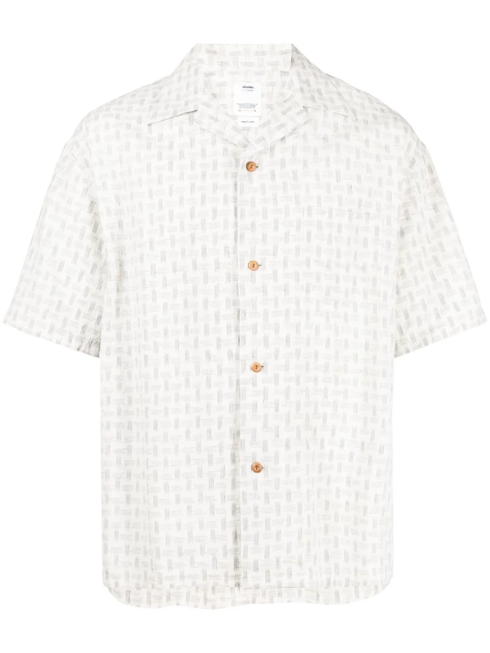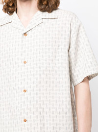 graphic-print short-sleeve shirt Highlights - Ivory white - Cotton-linen blend - All-over graphic print - Classic collar - Short sleeves - Front button fastening - Straight hem Imported Composition Cotton 85%, Linen/Flax 15% SIZE & FIT Model measurements Height 6 ft 2 in(1.87 m) Bust/Chest 36.22 in(92 cm) Hips 37.79 in(96 cm) Waist 28.34 in(72 cm) FittingInformation Designed for a boxy fit, intended for a loose fit throughout Made from a midweight non-stretch fabric This piece fits true to size – take your usual size Washing instructions Hand Wash