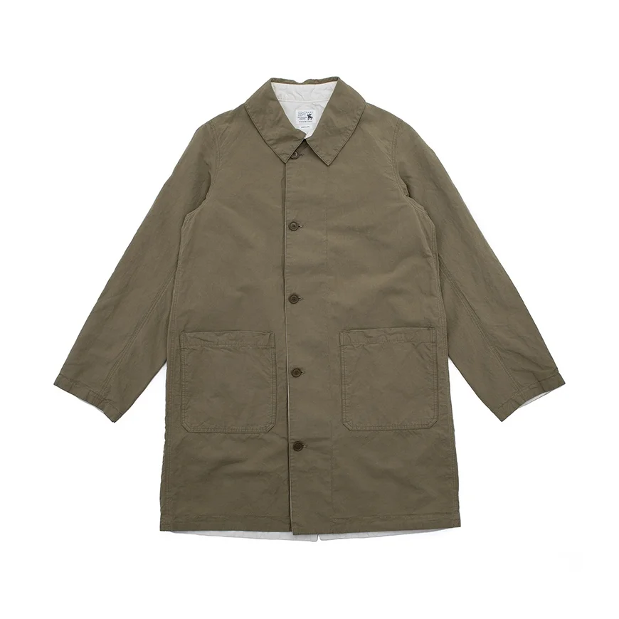 Chambray shop coat made from cotton-linen blend fabric Damage processed Super long staple cotton lining Original bakelite buttons Please Note : 52% Cotton , 48% Linen SIZE 1 : Length 93 , Shoulder 40.4 , Sleeve 65.3 , Chest 113.5 (cm) SIZE 2 : Length 96 , Shoulder 41.9 , Sleeve 66.8 , Chest 117.5 (cm) SIZE 3 : Length 99 , Shoulder 43.4 , Sleeve 68.3 , Chest 121.5 (cm) SIZE 4 : Length 102 , Shoulder 45.4 , Sleeve 69.8 , Chest 126.5 (cm) SIZE 5 : Length 105 , Shoulder 47.4 , Sleeve 71.3 , Chest 131.5 (cm) Please be aware that the fabric used may vary in color and pattern from item to item. Products may shrink slightly when washed.