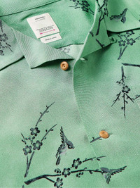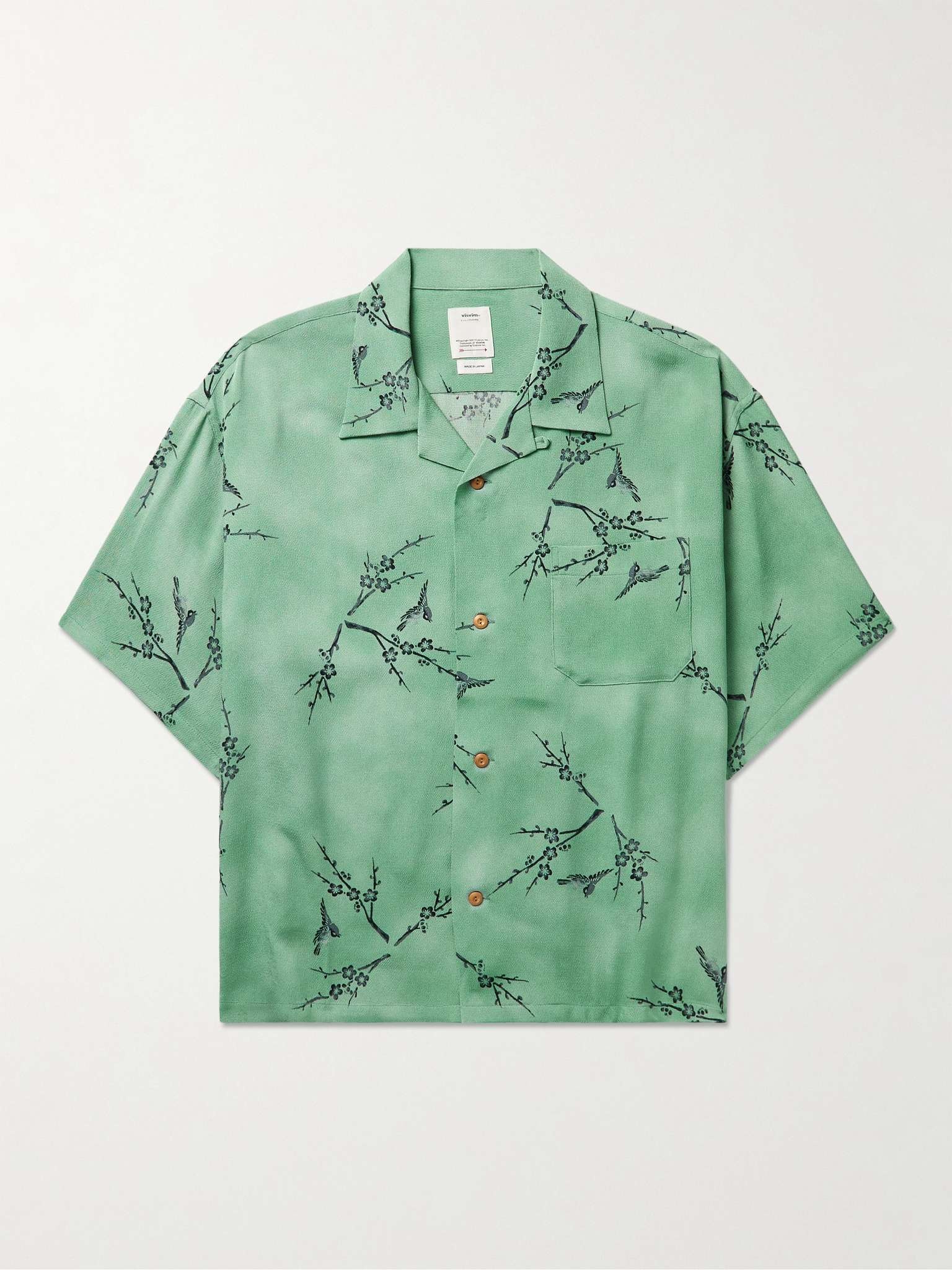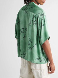 visvim's 'Harmon' shirt is printed with a motif of a bird on a branch that looks like a cool, linear pattern from afar. Made in Japan from lightweight silk-cloqué, it's cut for a boxy fit and has a relaxed convertible collar. Size & Fit - Size 1 = S, 2 = M, 3 = L, 4 = XL and 5 = XXL - Fits true to size. Take your normal size - The model is wearing a size larger to achieve a looser fit across the shoulders - This shirt is designed for a boxy fit - Lightweight, non-stretchy fabric - Model takes a 1 but is wearing a 2 to achieve a looser fit - Model measures: (S, IT 46, UK/US 36) chest 36"/ 92cm, height 6'2"/ 188cm Details & Care - Green, black and grey silk-cloqué - Button fastenings - 100% silk - Dry clean - Made in Japan