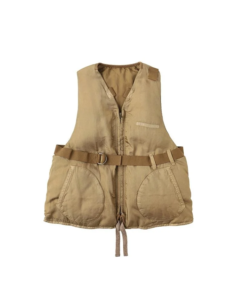 HARRIER DOWN VEST COLOR: NAVY, OLIVE, KHAKI SIZE: 1, 2, 3, 4, 5 Down vest made from specially processed rayon fabric White goose down filling Garment dyed Damaged finish Vintage CROWN zippers Original military tape Reversible 100% Rayon SIZE 1 : Length 66 , Shoulder 33.8 , Chest 115 (cm) SIZE 2 : Length 67.5 , Shoulder 35.3 , Chest 119 (cm) SIZE 3 : Length 69 , Shoulder 36.8 , Chest 123 (cm) SIZE 4 : Length 71 , Shoulder 38.8 , Chest 128 (cm) SIZE 5 : Length 73 , Shoulder 40.8 , Chest 133 (cm) Due to the use of natural dyes, the outward appearance of items may vary slightly from one another. For certain items, mud may be applied for an added effect. The fabric used may vary in color and pattern from item to item. Products may shrink slightly when washed.