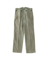HOLMAN PANTS DMGD COLOR: BLACK, GREEN, BEIGE SIZE: 1, 2, 3, 4, 5 Sailer pants made from specially processed cotton Garment dyed Damage processed Original water buffalo horn buttons 100% Cotton SIZE 1 : Waist 31.2 , Inseam 26.7 , Thigh width 12.4 , Hem width 7.5 (inch) SIZE 2 : Waist 33.1 , Inseam 27.5 , Thigh width 12.8 , Hem width 8 (inch) SIZE 3 : Waist 35.1 , Inseam 28.3 , Thigh width 13.3 , Hem width 8.5 (inch) SIZE 4 : Waist 37.1 , Inseam 29 , Thigh width 13.8 , Hem width 9 (inch) SIZE 5 : Waist 39 , Inseam 29.8 , Thigh width 14.2 , Hem width 9.5 (inch) Please be aware that the fabric used may vary in color and pattern from item to item. Products may shrink slightly when washed.