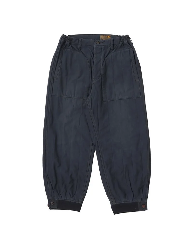 HW CARROL PANTS COLOR: NAVY, OLIVE, MUSTARD SIZE: 1, 2, 3, 4, 5 A quilted pant made from a woven back satin material that consists of a specially processed cotton and nylon yarn Damaged Finish Natural Dye Finish Treatment Custom Water Buffalo buttons 50% NYLON 50% COTTON UNIT:cm Items that are finished with Natural Dye will experience different textural finishes where no two are alike. Also, there may be pieces that have mud left on the finished garment as a result of the treatment. Please be aware that there may also be slight variations in the color of the fabric and pattern than shown in the images. There will be slight shrinkage when washing for the first time. SIZE LENGTH INSEAM WAIST THIGH WIDTH HEM 1 91 59.2 74 36.1 17.7 2 93.5 61.2 78 37.1 18.7 3 96 63.2 82 38.1 19.7 4 98.5 65.2 87 39.3 20.9 5 101 67.2 92 40.5 22.1
