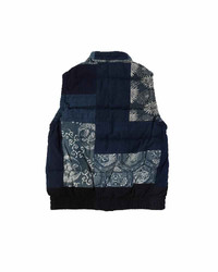 INSULATOR DOWN VEST KOFU COLOR : INDIGO, INDIGO PATTERN SIZE : 1, 2, 3, 4, 5 Down vest made from vintage Japanese fabric One wash Native American print lining White mother goose down filling Original snap buttons Please Note : 100% Cotton SIZE 1 : Length 25.7 , Shoulder 15.2 , Chest 43.3 (inch) SIZE 2 : Length 26.7 , Shoulder 16 , Chest 45.7 (inch) SIZE 3 : Length 27.6 , Shoulder 16.8 , Chest 47.6 (inch) SIZE 4 : Length 28.6 , Shoulder 17.6 , Chest 49.6 (inch) SIZE 5 : Length 29.6 , Shoulder 18.4 , Chest 51.6 (inch) Please be aware that the vintage fabric, bandanas, blanket, and african indigo fabric used may vary in color and pattern from item to item. With time, these fabrics may also become weaker and less tear-resistant. Also, due to the use of natural dyes, the outward appearance of items may vary slightly from one another. For certain items, mud may be applied for an added effect. Products may shrink slightly when washed.