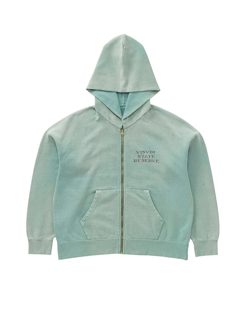 JUMBO SB HOODIE F.Z. CRASH COLOR: NAVY, ORANGE, LT.GREEN SIZE: 1, 2, 3, 4, 5 A Crewneck Full Zip Hoodie Jumbo Silhouette Garment Dyed Crash Damaged Details Custom Zip Fastener "VISVIM STATE RESERVE" Print details 100% COTTON UNIT:cm : Please be aware that there may be slight variations in the color of the fabric and pattern than shown in the images. There will be slight shrinkage when washing for the first time. SIZE LENGTH CHEST SHOULDER SLEEVE 1 62.5 110 61 47.5 2 64.5 115 63 49 3 66.5 120 65 50.5 4 69 125 67 52 5 71.5 130 69 53.5