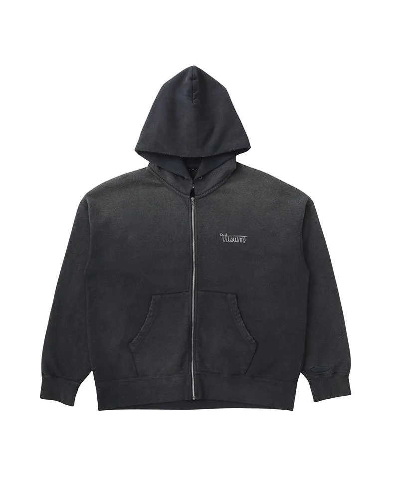 JUMBO SB HOODIE F.Z. DISTRICT CRASH COLOR: BLACK SIZE: 1, 2, 3, 4, 5 Custom French Terry Full Zip Cotton Hoodie Jumbo Silhouette Garment Dyed and Crash Damaged Finish Custom Zip Fastener "Visvim" (Front) Print Detail "VISVIM DISTRICT" (Back) Print Detail 100% Cotton UNIT:cm : Please be aware that there may be slight variations in color or pattern from the images shown due to the nature of the fabric being used. Additionally the style will experience some shrinkage when washed. SIZE LENGTH CHEST SHOULDER SLEEVE 1 62.5 110 61 49.5 2 64.5 115 63 51 3 66.5 120 65 52.5 4 69 125 67 54 5 71.5 130 69 55.5