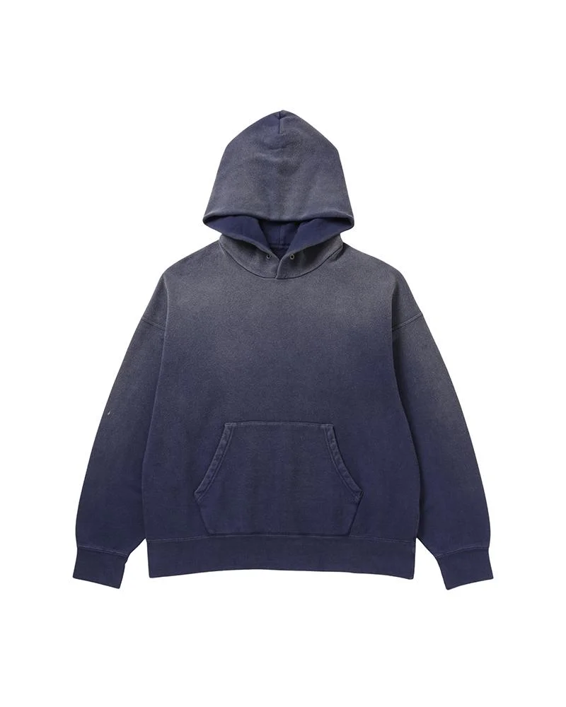 JUMBO SB HOODIE P.O. CRASH COLOR: NAVY, LT.GREEN, BEIGE SIZE: 1, 2, 3, 4, 5 Pullover Hoodie made with a french terry material Jumbo Silhouette Garment Dyed and Crash Damaged Finish 100% COTTON UNIT:cm : Please be aware that there is a possibility for slight variations in the color appearance and pattern on the fabric that is utilized for this product; each finished garment may be different from the displayed product image. There may also be some shrinkage following the first wash of this product. The Kofu, Bandana, Blanket, African Indigo textile and vintage fabrics used for the name tag and actual product itself vary in color and pattern where no two pieces are alike. Additionally, the degree of deterioration will vary with each fabric depending on its age and historical use so these products should be considered more fragile in comparison to our regularly manufactured products. SIZE LENGTH CHEST SHOULDER SLEEVE 1 62.5 110 61 47.5 2 64.5 115 63 49 3 66.5 120 65 50.5 4 69 125 67 52 5 71.5 130 69 53.5