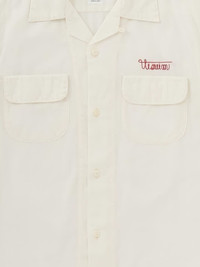 logo-embroidered shirt Highlights - White - Short sleeves - Camp collar - Chest pockets - Button fastening - Embroidered detail Imported Composition Cotton 92%, Silk 8% Washing instructions Read Manufacturer Guidelines