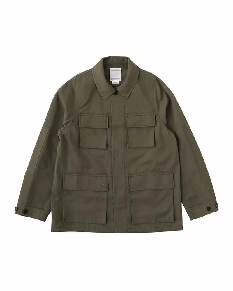 KILGORE JKT (W/L) COLOR: BLACK, OLIVE, CAMO SIZE: 1, 2, 3, 4, 5 Herringbone jacket made from wool-linen blend fabric Pressed finish Original vegetable ivory buttons Please Note : 83% Wool , 17% Linen SIZE 1 : Length 28.9 , Shoulder 15.2 , Sleeve 26 , Chest 44.9 (inch) SIZE 2 : Length 29.9 , Shoulder 15.7 , Sleeve 26.6 , Chest 46.5 (inch) SIZE 3 : Length 30.9 , Shoulder 16.3 , Sleeve 27.2 , Chest 48 (inch) SIZE 4 : Length 31.9 , Shoulder 17.1 , Sleeve 27.8 , Chest 50 (inch) SIZE 5 : Length 32.9 , Shoulder 17.9 , Sleeve 28.3 , Chest 52 (inch) The fabric used may vary in color and pattern from item to item. Products may shrink slightly when washed.