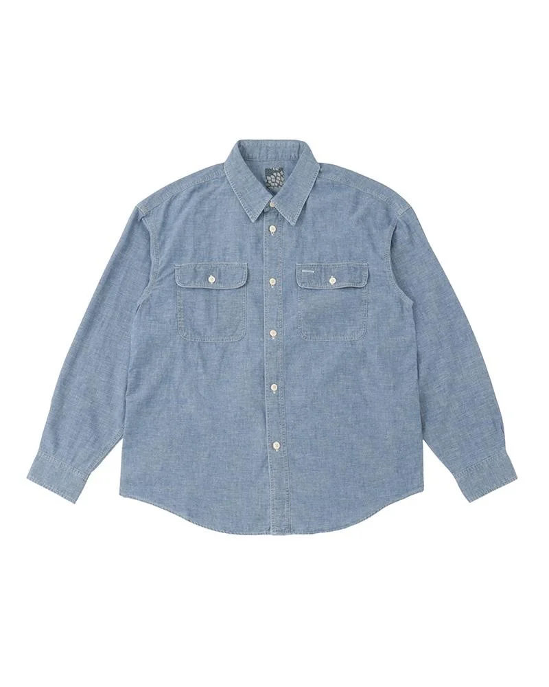 LANGER CHAMBRAY L/S COLOR: INDIGO, LT.INDIGO SIZE: 1, 2, 3, 4, 5 A shirt made from a woven cotton chambray material with a selvedge finish detail. Damaged Finish Custom Water Buffalo buttons 100% COTTON UNIT:cm : Items that are finished with Natural Dye will experience different textural finishes where no two are alike. Also, there may be pieces that have mud left on the finished garment as a result of the treatment. Please be aware that there may also be slight variations in the color of the fabric and pattern than shown in the images. There will be slight shrinkage when washing for the first time. SIZE LENGTH CHEST SHOULDER SLEEVE 1 71.5 123 57.4 56.1 2 74 127 58.9 57.6 3 76.5 131 60.4 59.1 4 79 136 62.4 60.6 5 81.5 141 64.4 62.1