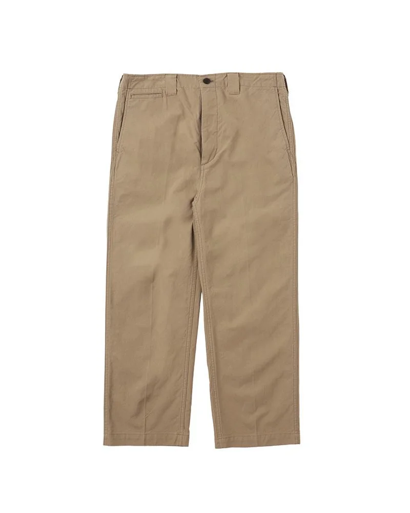 LEAGUERS CHINO COLOR: NAVY, GREEN, BEIGE SIZE: 1, 2, 3, 4, 5 One Wash Straight Leg silhouette Cropped Length High-rise Custom Water Buffalo buttons Custom Cinch-Back detail 100% COTTON UNIT:cm : Items that are finished with Natural Dye will experience different textural finishes where no two are alike. Also, there may be pieces that have mud left on the finished garment as a result of the treatment. Please be aware that there may also be slight variations in the color of the fabric and pattern than shown in the images. There will be slight shrinkage when washing for the first time. SIZE LENGTH INSEAM WAIST THIGH WIDTH HEM 1 89.5 59.5 80 29.9 20.9 2 92 61.5 85 31.1 22.1 3 94.5 63.5 90 32.3 23.3 4 97 65.5 95 33.5 24.5 5 99.5 67.5 100 34.7 25.7