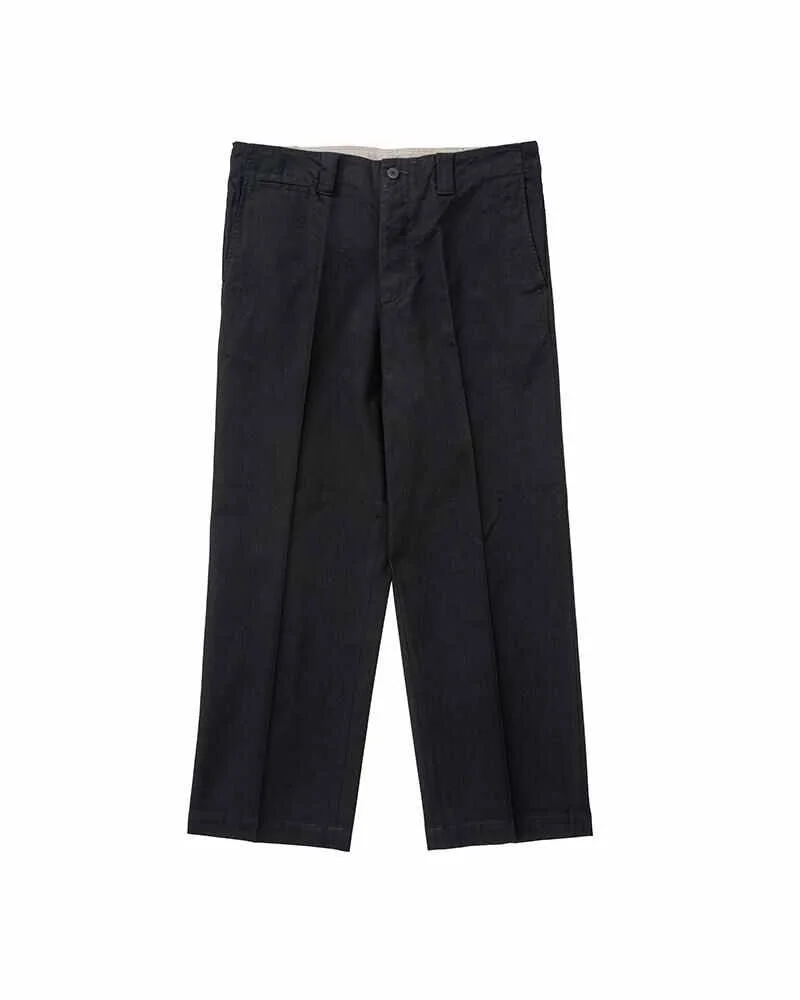 LEAGUERS CHINO COLOR: NAVY, GREY, BEIGE SIZE: 1, 2, 3, 4, 5 Densely woven long staple cotton Chino Pants One Wash Straight Leg silhouette Cropped Length High-rise Custom Water Buffalo buttons Custom Cinch-Back detail 100% COTTON UNIT:cm Please be aware that there may be slight variations in the color of the fabric and pattern than shown in the images. There will be slight shrinkage when washing for the first time. SIZE LENGTH INSEAM WAIST THIGH WIDTH HEM 1 89.5 59.5 80 29.9 20.9 2 92 61.5 85 31.1 22.1 3 94.5 63.5 90 32.3 23.3 4 97 65.5 95 33.5 24.5 5 99.5 67.5 100 34.7 25.7