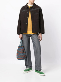 logo-print crinkle-effect shirt jacket visvim was founded in 2000 by Hiroki Nakamura who counts his global travels - most notably through America - as a key source of inspiration. Fabricated in Japan, this dark brown shirt jacket is detailed with a crinkle finish and features a stencil logo print across the chest and shoulders. Imported Composition Cotton 100% SIZE & FIT Model measurements Height 6 ft 0 in(1.83 m) Bust/Chest 37.79 in(96 cm) Hips 37 in(94 cm) Waist 30.31 in(77 cm) FittingInformation This piece fits true to size. We recommend you get your regular size Cut for a loose fit Made with a mid-weight fabric Washing instructions Hand Wash