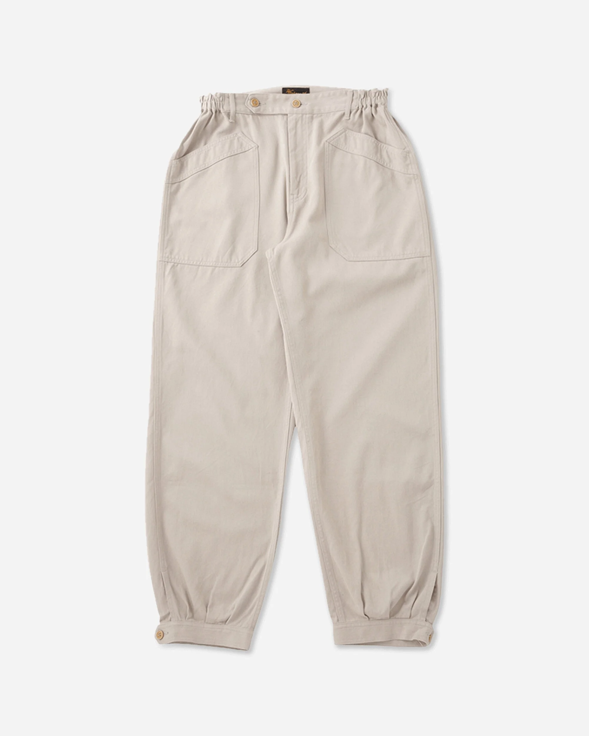 visvim Motors Club Carrol Pants Ivory visvim releases the 3rd capsule collection of its conceptual line known as "VISVIM MOTORS CLUB". The collection presents items and designs inspired by motor sport, which include a leather stadium jacket, a shirt made with a Kurume Kasuri material depictig a checkered flag motif, and a pair of new driving pants alongside much more. - 100% Cotton - Custom Soft Wave Long Staple Cotton - One Wash - Custom Water Buffalo Button - Zip-Fly - Two Side Pockets - Two Back Pockets - Adjustable Cuffs - Made in Japan - Style Code: 0125305008003 1