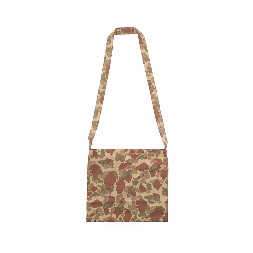 MUSETTE CAMO COLOR : KHAKI , OLIVESIZE : ONE SIZE Camouflage musette bag made from cotton-linen blend fabricDamage processed Please Note:Shell : 65% Cotton , 35% LinenLining : 50% Cotton , 50% LinenW : 35 , H : 33 (cm)Please be aware that the fabric used may vary in color and pattern from item to item. Products may shrink slightly when washed.