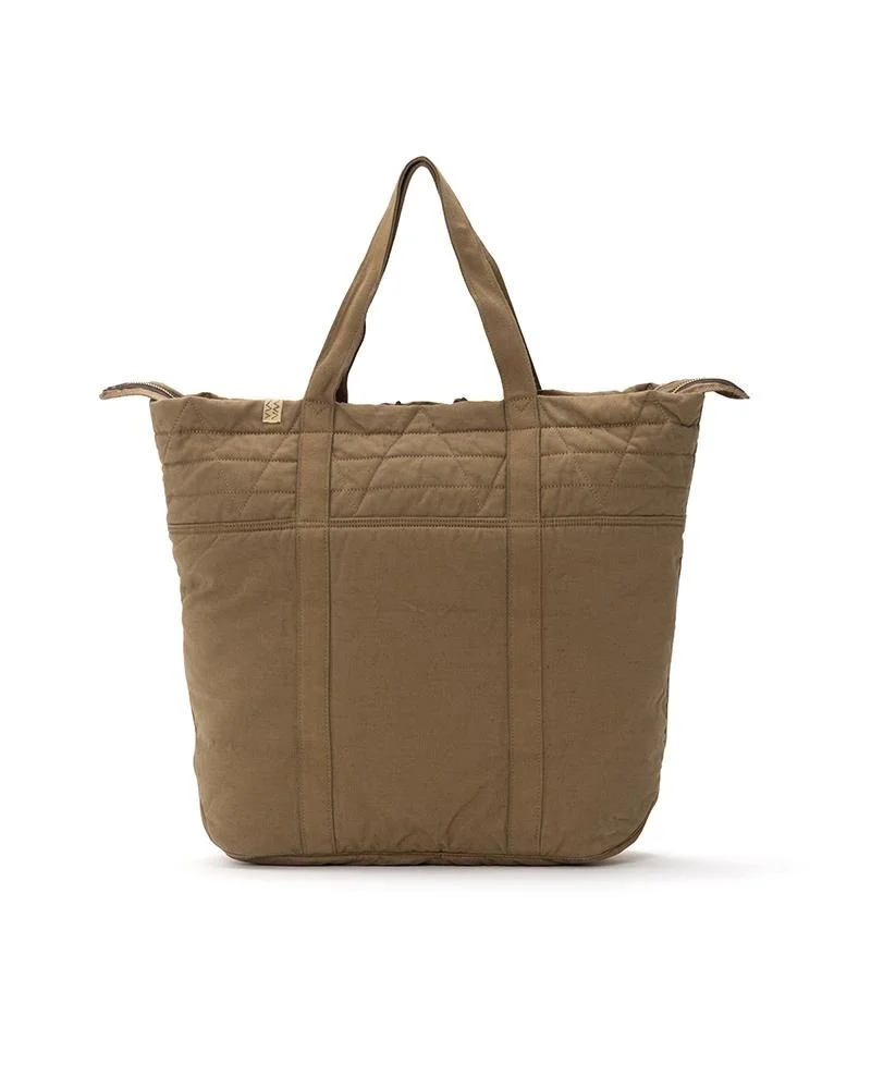 N.A.P. TOTE (L) COLOR: BLACK, OLIVE, KHAKI SIZE: ONE SIZE Custom Cotton, Linen, and Nylon Blend Tote Bag Damaged Finish Custom Military Tape and Zip Fastener 73% Cotton 17% Linen 10% Nylon UNIT:cm : Please be aware that there may be slight variations in color or pattern from the images shown due to the nature of the fabric being used. Additionally the style will experience some shrinkage when washed. SIZE HEIGHT WIDTH GUSSET ONE SIZE 45 57 17
