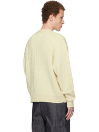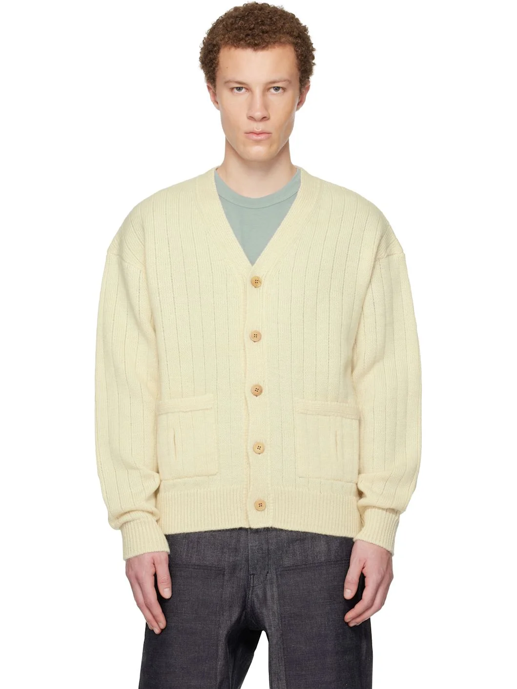 Pointelle-knit wool- and mohair-blend cardigan. · Rib-knit Y-neck, hem, and cuffs · Button closure · Patch pockets at waist Supplier color: Ivory 49% wool, 21% mohair, 19% linen, 11% nylon. Made in Japan 261487M200002