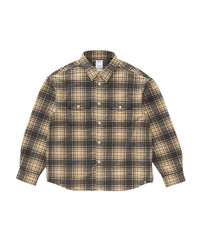 PIONEER CHECK L/S COLOR: BLACK, LT.GREEN, BEIGE SIZE: 1, 2, 3, 4, 5 A Flannel Shirt made from a custom long-staple cotton cloth with custom print Damaged Finish Custom Water Buffalo Buttons 100% COTTON UNIT:cm Please be aware that there may be slight variations in the color of the fabric and pattern than shown in the images. There will be slight shrinkage when washing for the first time. SIZE LENGTH CHEST SHOULDER SLEEVE 1 69.8 111 57 56.4 2 72.3 115 58.5 57.9 3 74.8 119 60 59.4 4 77.3 124 62 60.9 5 79.8 129 64 62.4