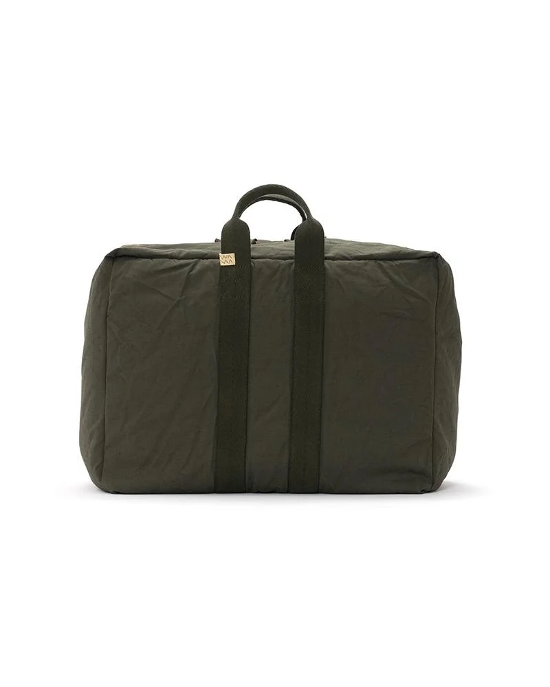 PLURA BAG COLOR: BLACK, OLIVE, KHAKI SIZE: ONE SIZE Custom Cotton, Linen, and Nylon Blend Travel Duffel Bag Damaged Finish Custom Military Tape and Zip Fastener 73% Cotton 17% Linen 10% Nylon UNIT:cm : Please be aware that there may be slight variations in color or pattern from the images shown due to the nature of the fabric being used. Additionally the style will experience some shrinkage when washed. SIZE HEIGHT WIDTH GUSSET ONE SIZE 40 49 29