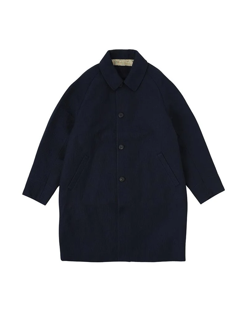 REMI COAT COLOR: BLACK, NAVY SIZE: 1, 2, 3, 4, 5 A coat that is made with a jacquard fabric with sashiko stitch details. Pressed Finish Custom Water Buffalo buttons 58% COTTON 32% WOOL 10%LINEN UNIT:cm Please be aware that the vintage fabric, bandanas, blanket, and african indigo fabric used may vary in color and pattern from item to item. With time, these fabrics may also become weaker and less tear-resistant. Also, due to the use of natural dyes, the outward appearance of items may vary slightly from one another. For certain items, mud may be applied for an added effect. Products may shrink slightly when washed. SIZE LENGTH CHEST SLEEVE 1 99.5 125.7 86 2 102.5 129.7 88.2 3 105.5 133.7 90.5 4 108.5 138.7 93 5 111.5 143.7 95.5