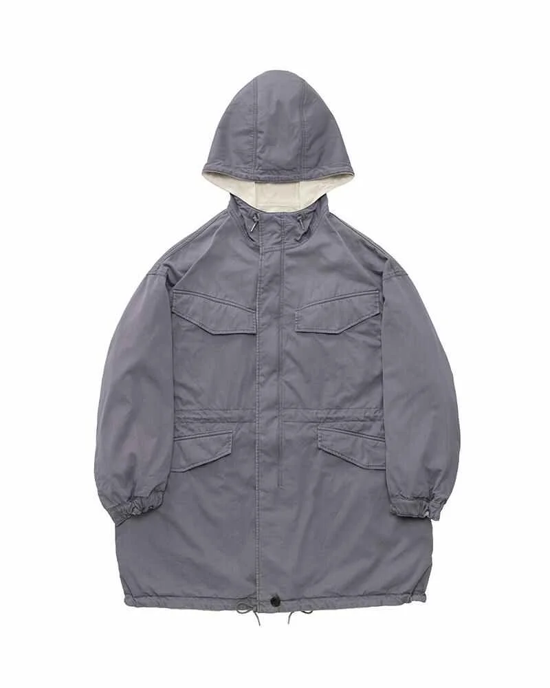 SAS COVERT PARKA COLOR: OLIVE, GREY, KHAKI SIZE: 1, 2, 3, 4, 5 A Reversible Jacket made from a densely woven Cotton/Nylon twill fabric that has undergone a special treatment Damaged Finish Natural Dye Finish Swiss riri zip fastener Custom Water Buffalo Buttons Custom Snap Buttons Reversible 77% COTTON 23% NYLON UNIT:cm : Items that are finished with Natural Dye will experience different textural finishes where no two are alike. Also, there may be pieces that have mud left on the finished garment as a result of the treatment. Please be aware that there may also be slight variations in the color of the fabric and pattern than shown in the images. There will be slight shrinkage when washing for the first time. SIZE LENGTH CHEST SHOULDER SLEEVE 1 92.8 135 67.8 54.3 2 95.3 139 69.3 55.8 3 97.8 143 70.8 57.3 4 100.3 148 72.8 59.3 5 102.8 153 74.8 61.3
